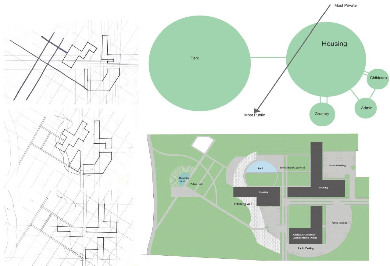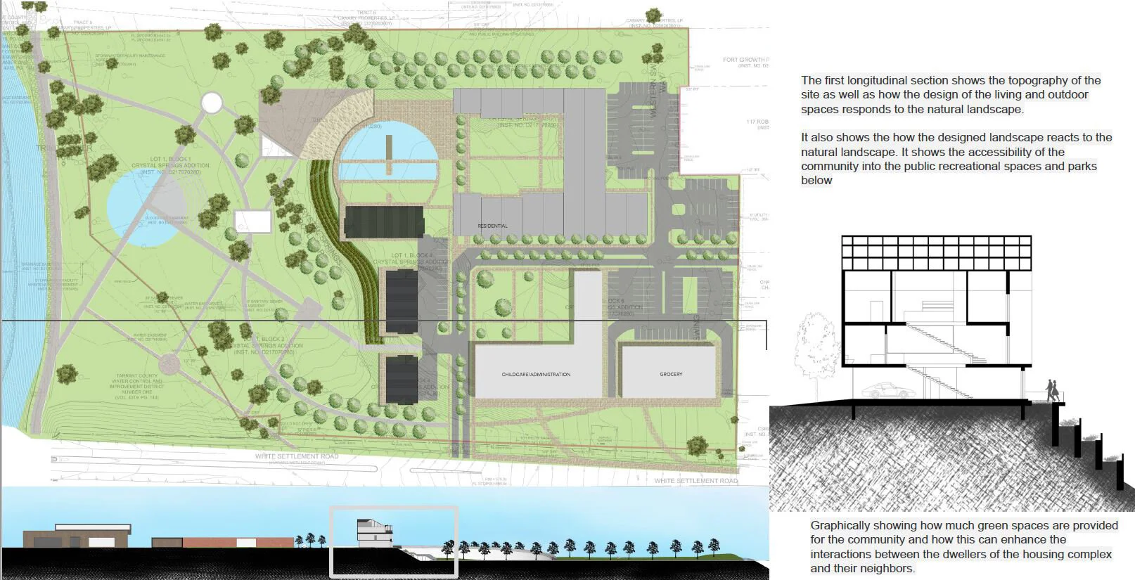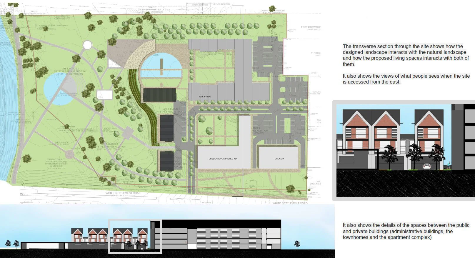 Trinity Parks x Terraces: multi-family housing units of modern design that fit into an old neighborhood of White Settlement, Fort Worth // method: surface manipulation, adaptive design, orientation, a combination of two typologies of house designs // proposed location: White Settlement, Fort Worth, TX.